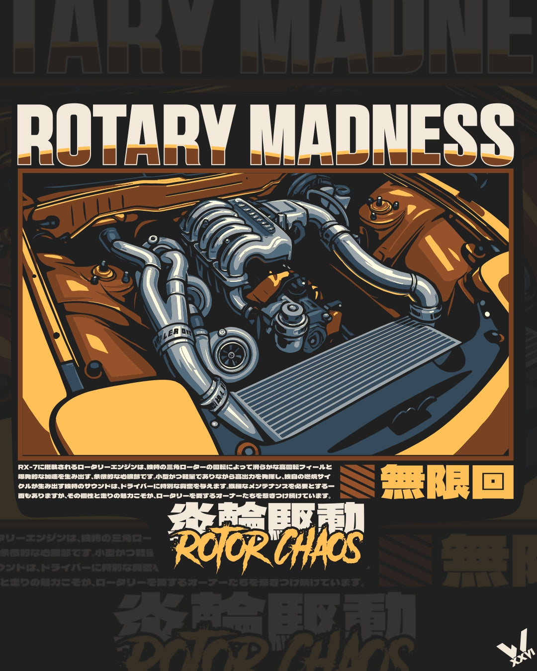 This premium RX7 20B illustration is a clean, high-detail JDM digital artwork perfect for T-shirt designs, stickers, posters, and print-on-demand shops. This artwork is ideal for automotive brands, merch stores, car enthusiasts & also personal use.